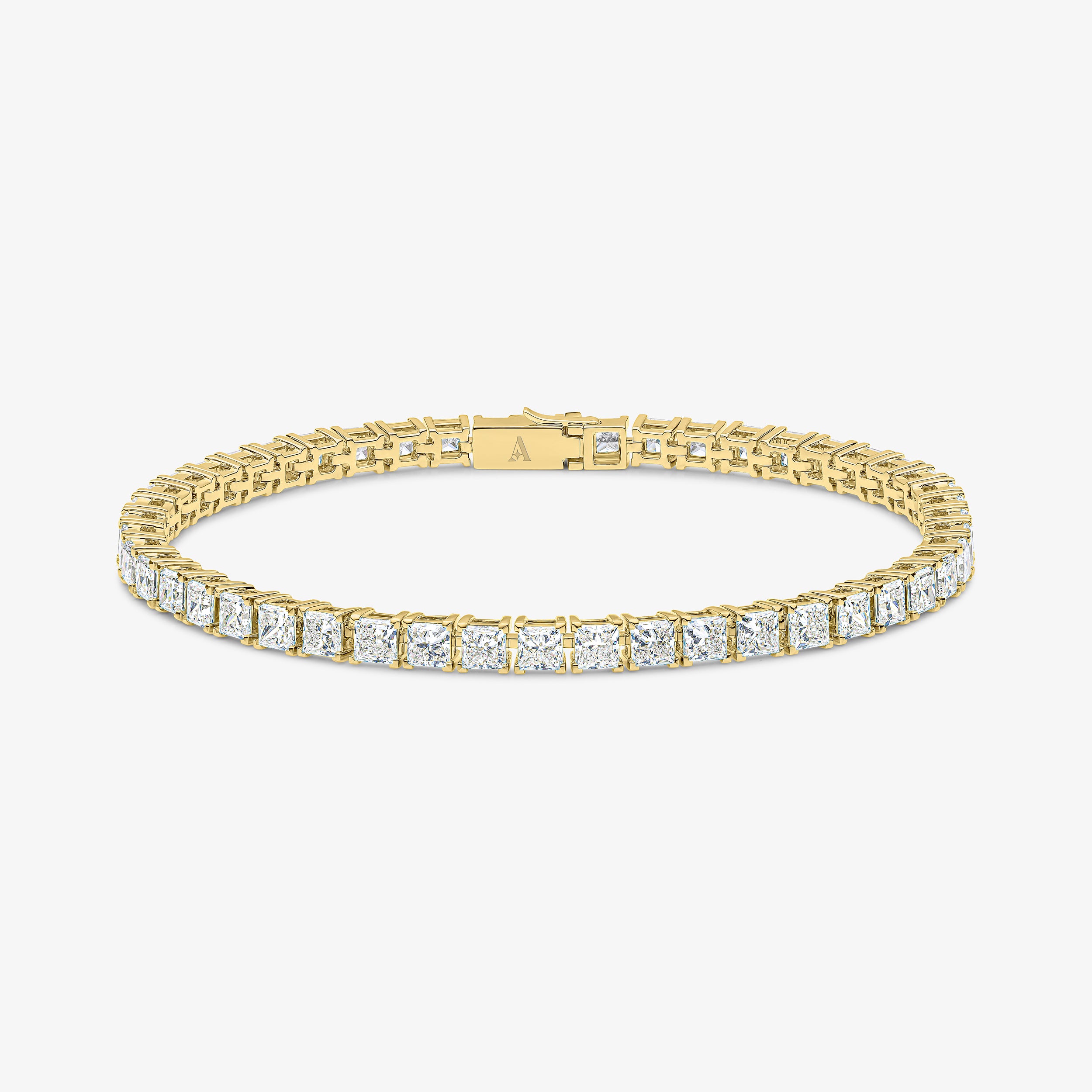 A strikingly different tennis bracelet with squared off asscher cut lab diamonds set in 18k gold.