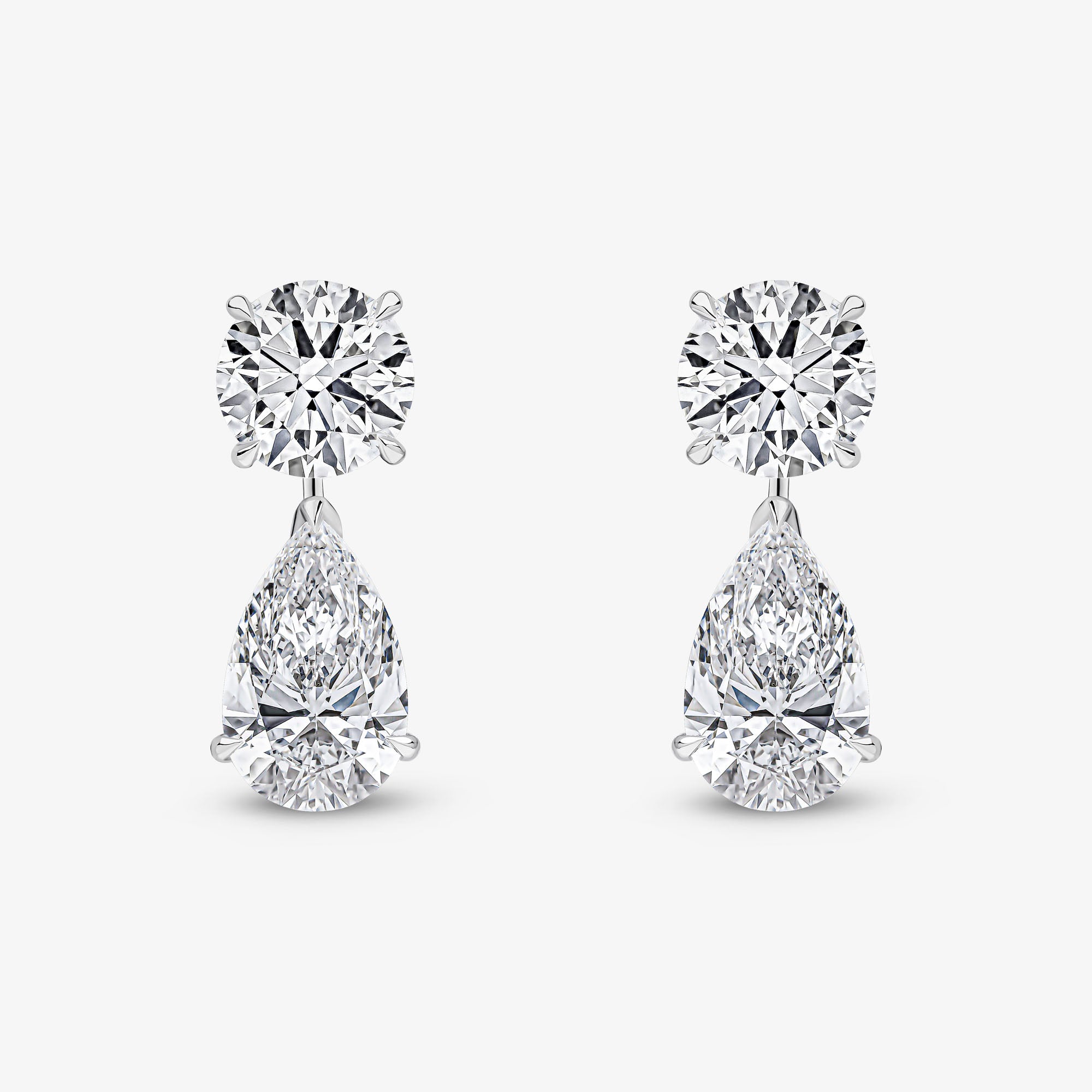 Round Brilliant and Pear Cut Detachable Drop Earrings