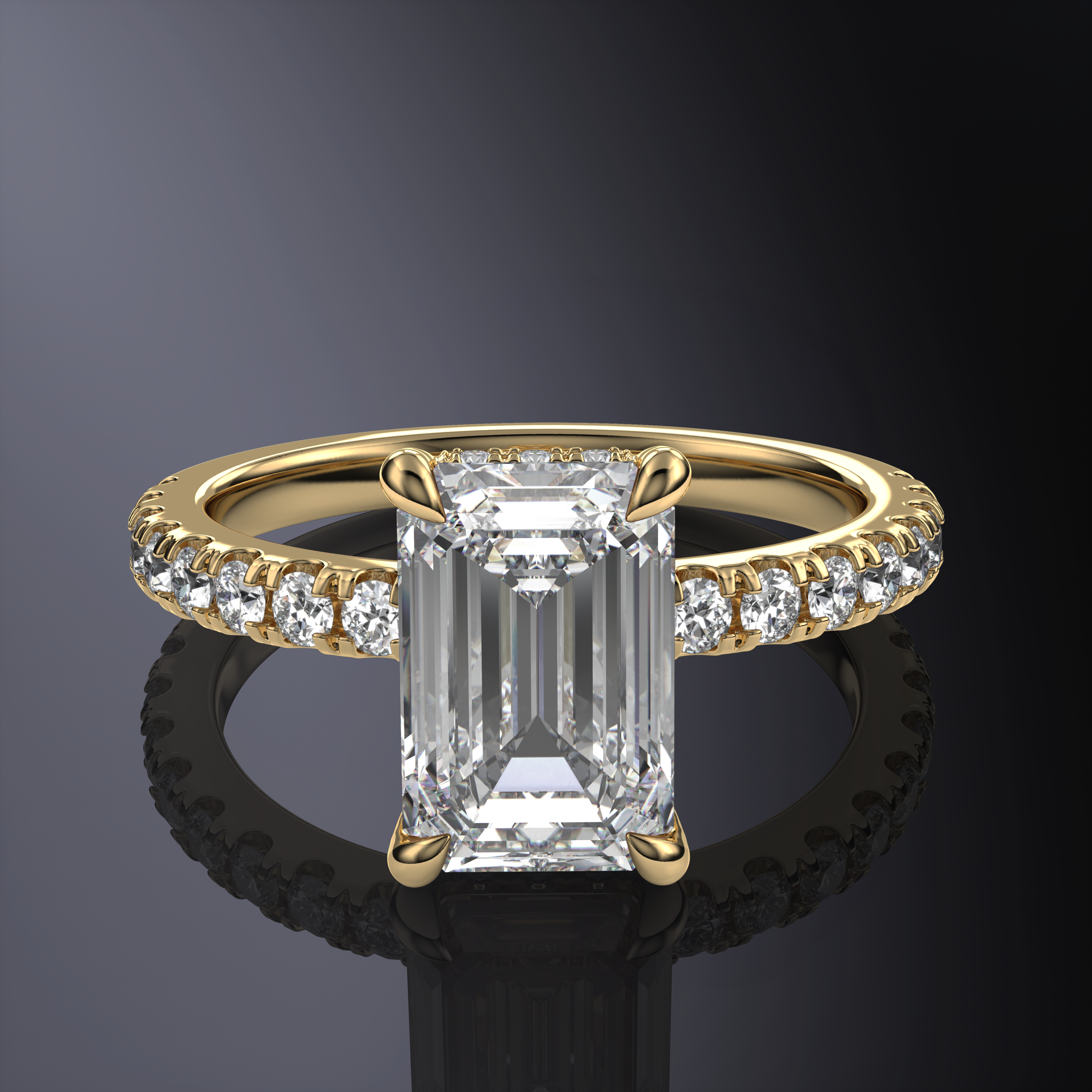 Emerald Hidden Halo Yellow Ring with Pavé Band