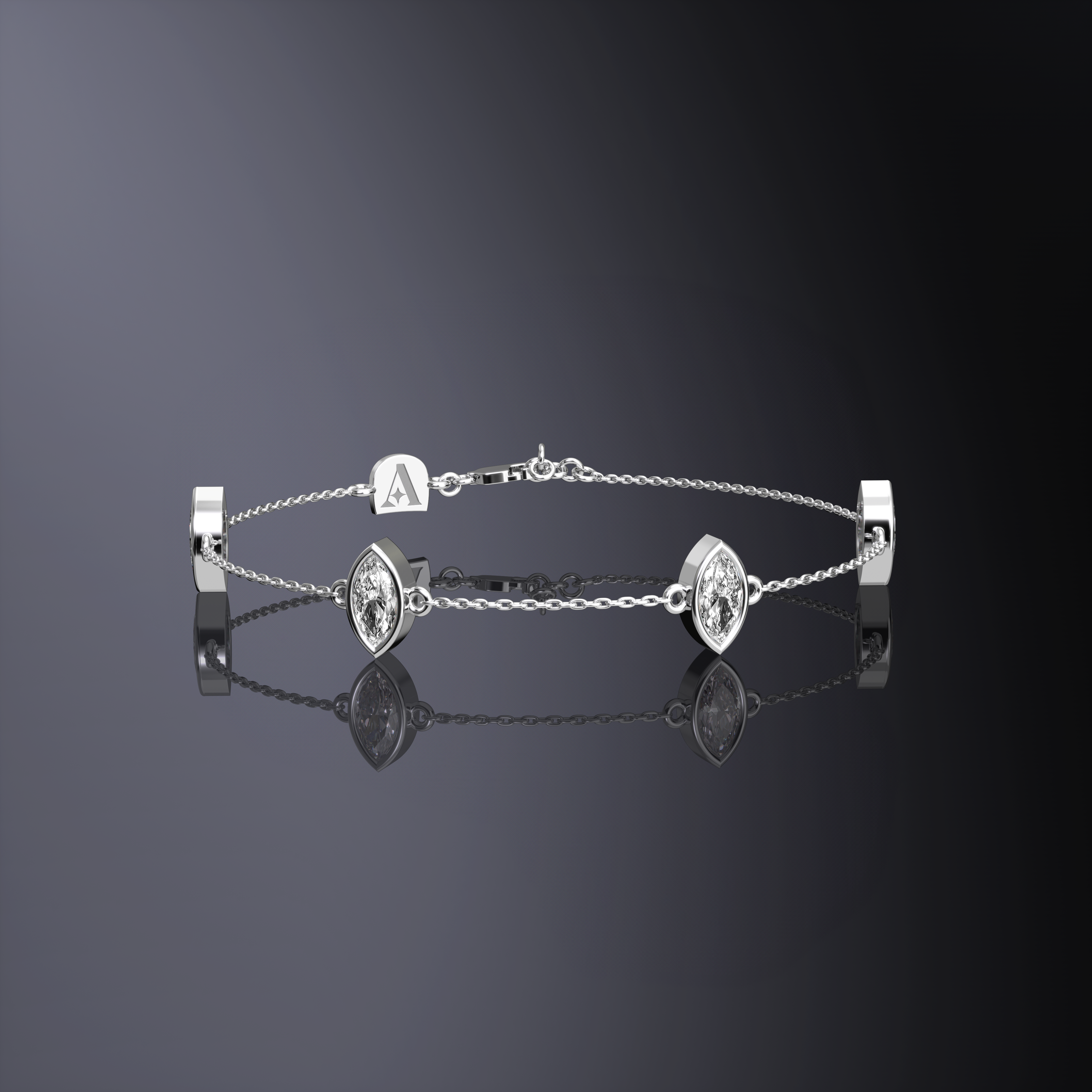 Marquise Cut Four Stone Chain Bracelet (POS) White