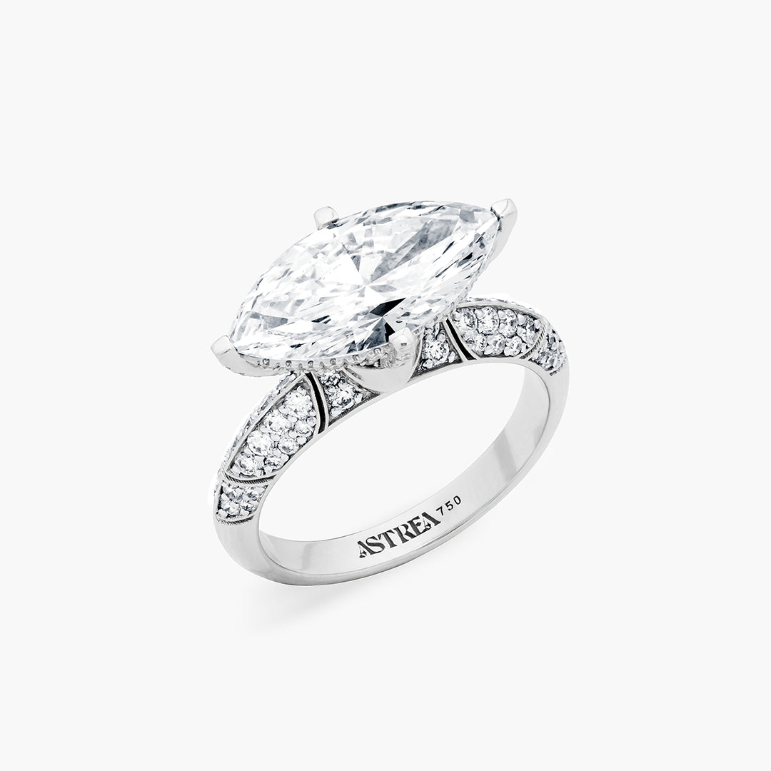 The Marquise Rotating Diamond Ring from the Sarah Jessica Parker Collection, set in 18K Gold, featuring a 3cts marquise lab-grown diamond.