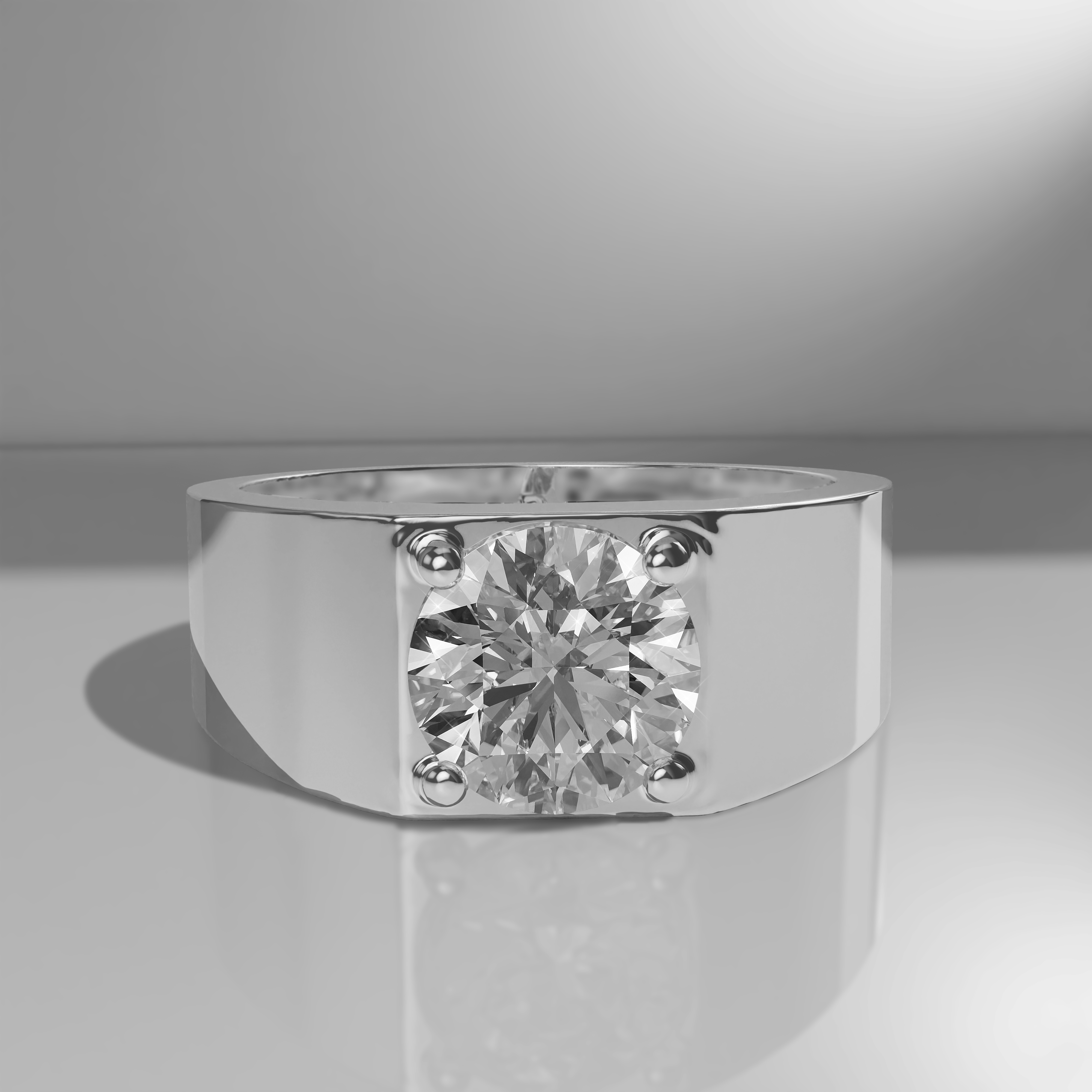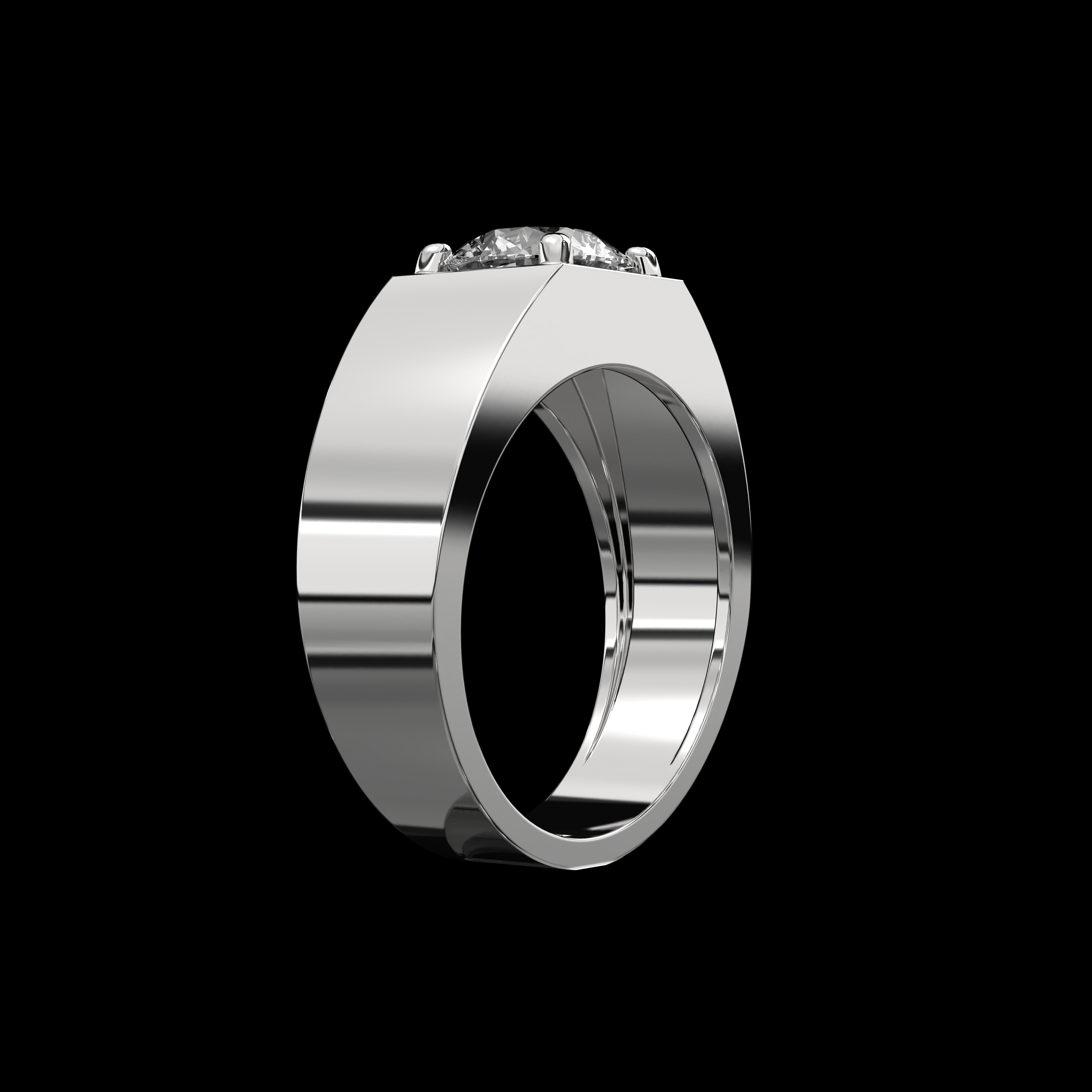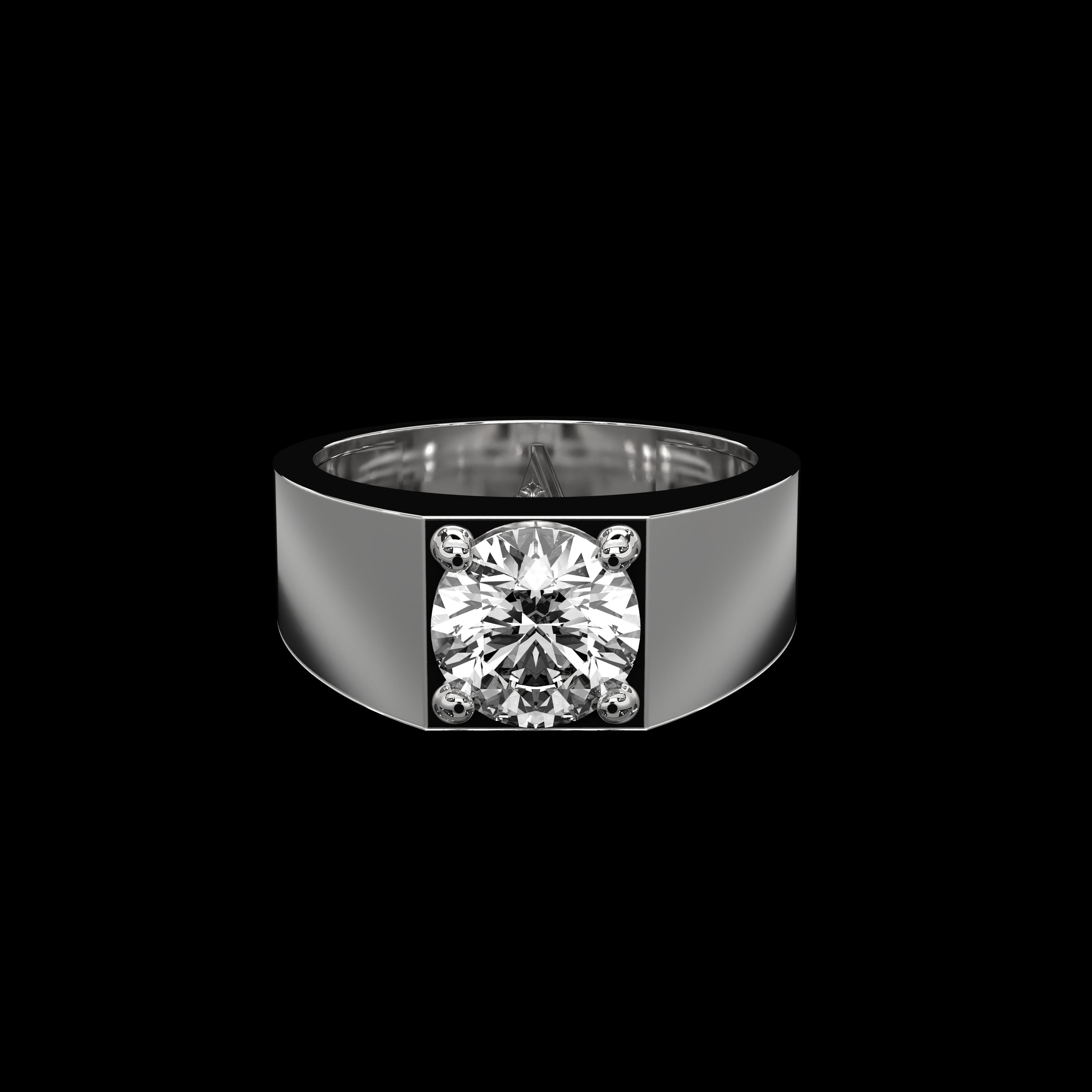 A striking ring featuring a single diamond set in 18k gold or platinum, with a look that combines strength and elegance