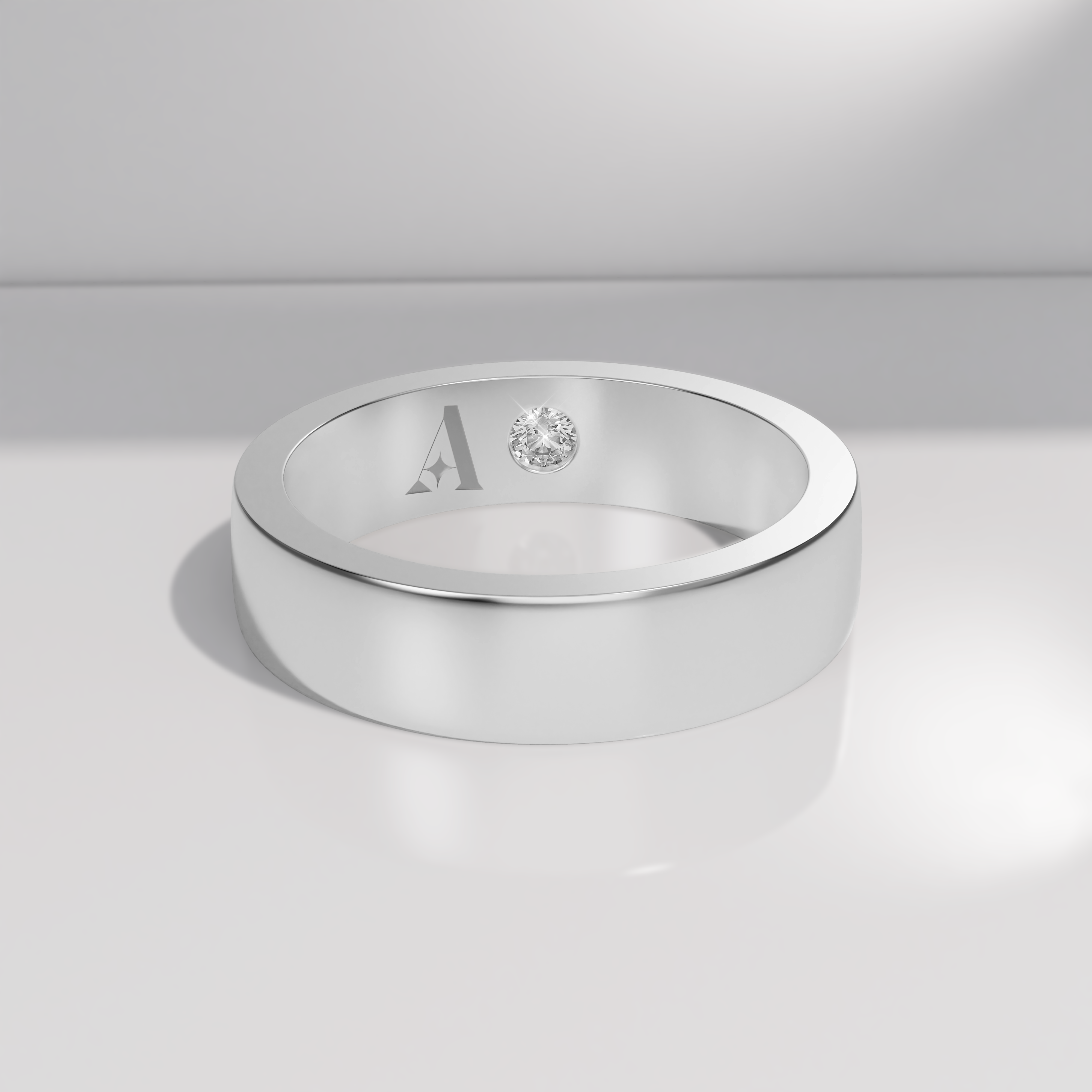 Classic men's wedding band with a hidden secret diamond, set in 18k gold or platinum.