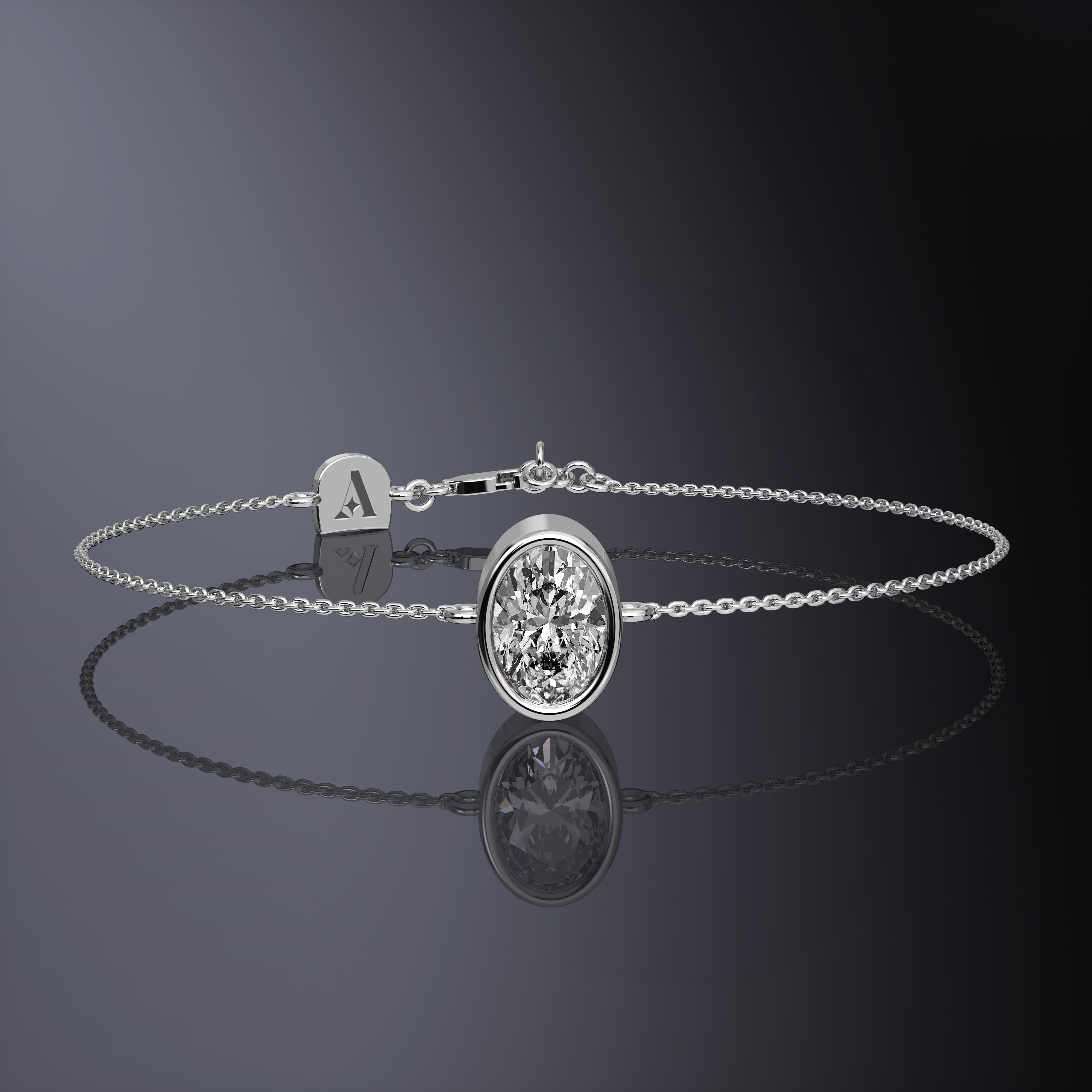 Oval Cut Single Stone Chain Bracelet (POS) White