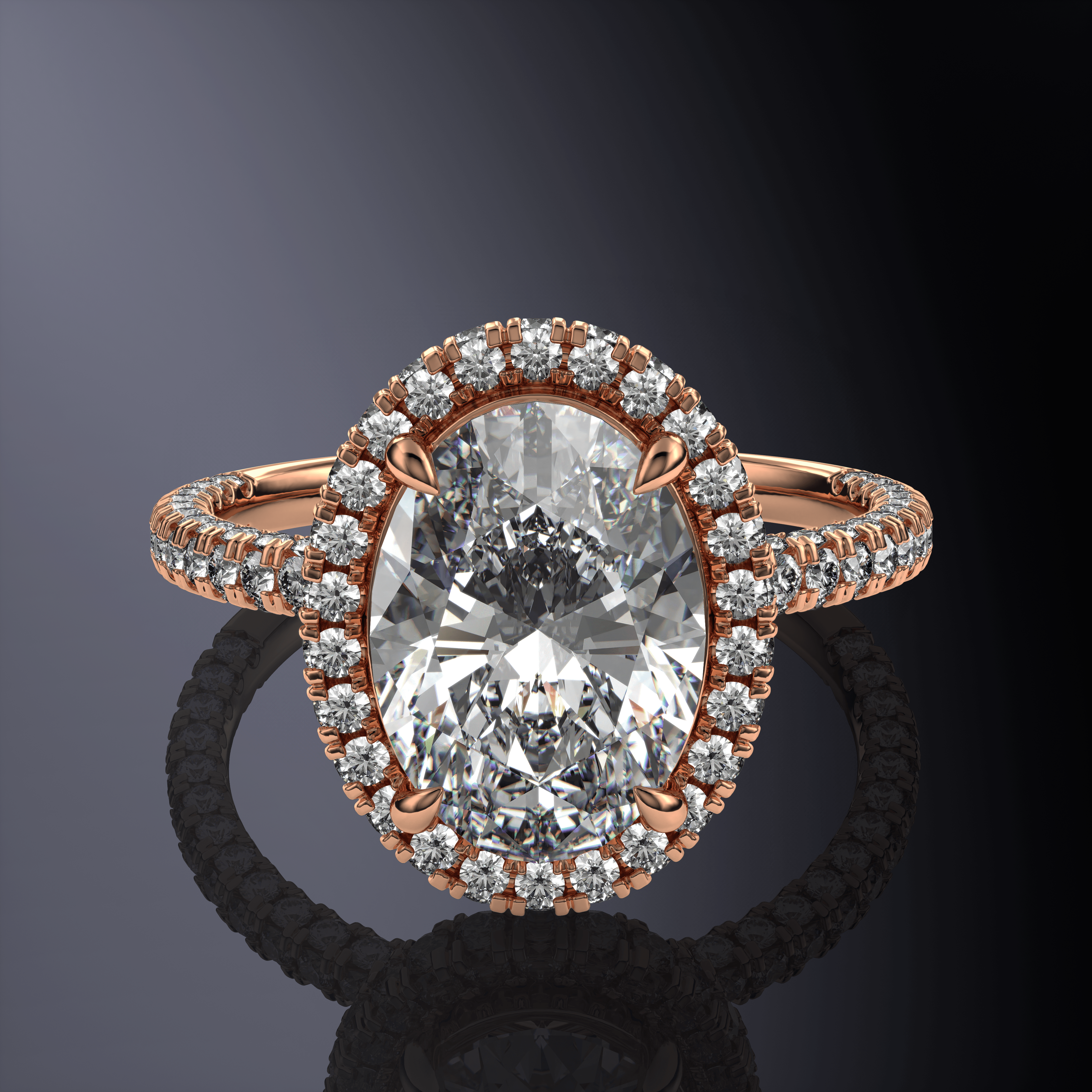 Oval Halo Rose Ring with Hidden Halo and Three-Sided Pavé Band