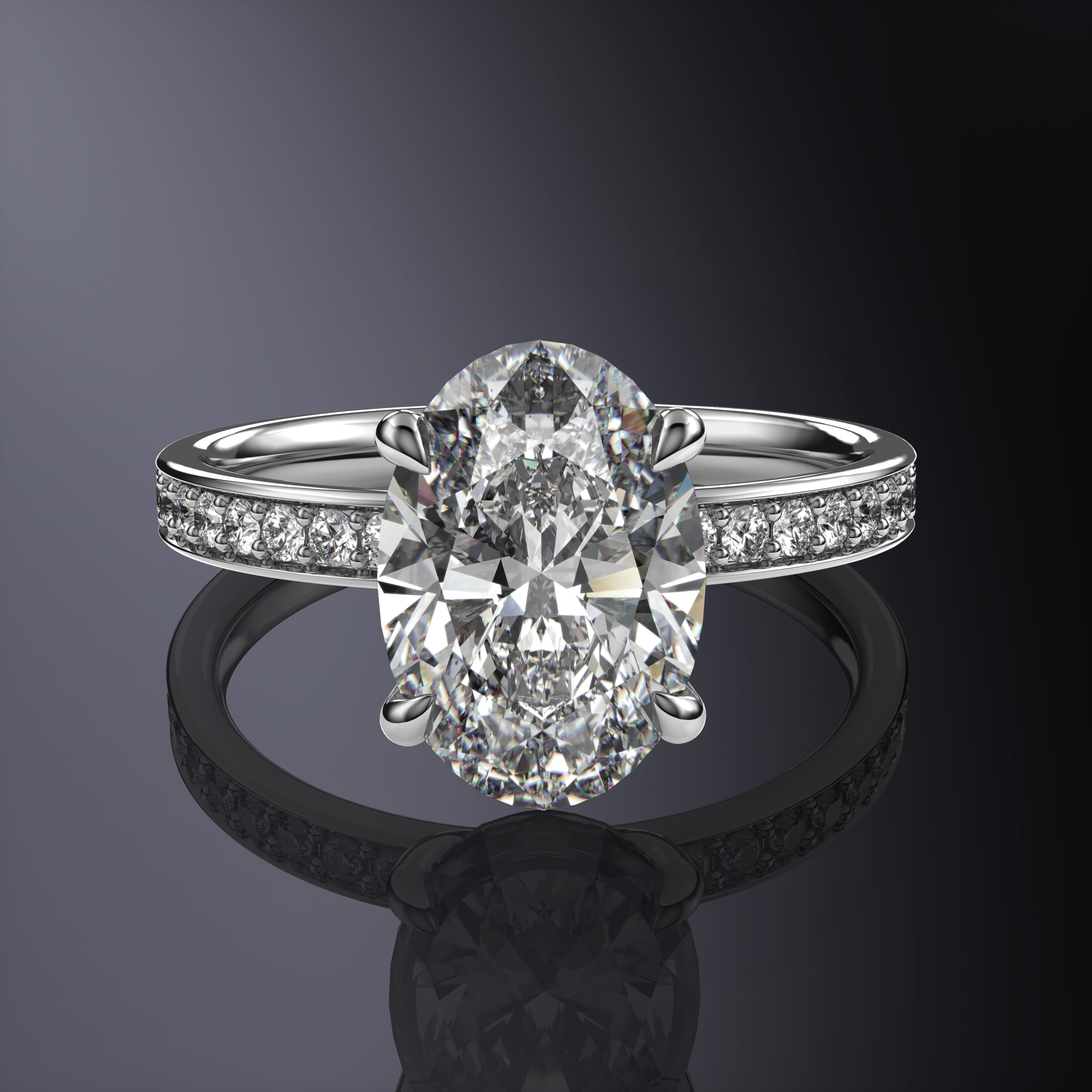 Oval Pavé Solitaire Platinum Ring