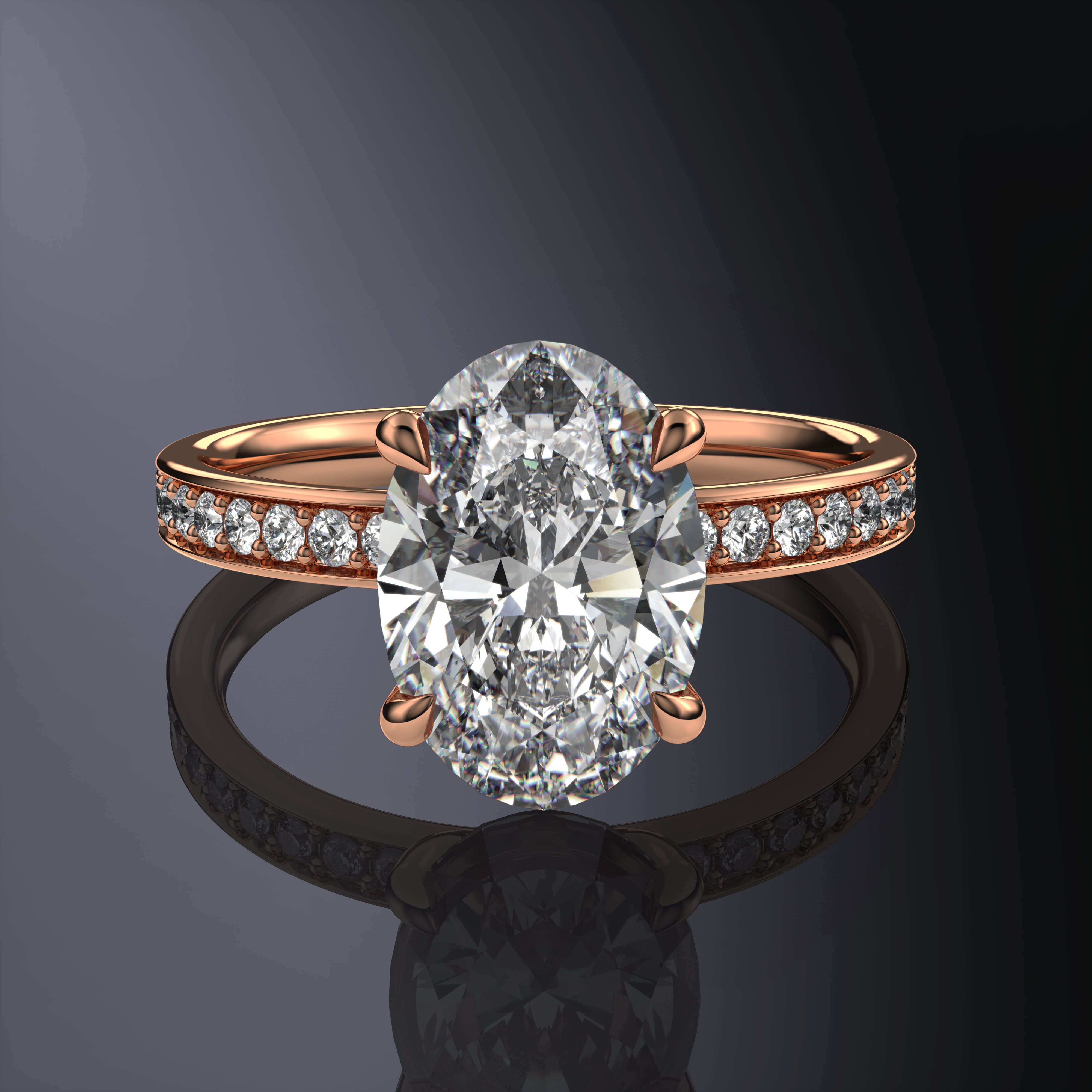 The Oval Pavé Solitaire Ring is a timeless design that showcases the elegance of an oval lab-grown diamond. Set on a delicate pavé band, the diamond’s brilliance is enhanced by the added sparkle of meticulously set accent stones. With its refined and sophisticated look, this ring is perfect for those who appreciate classic beauty with a modern touch. Available in platinum and 18K gold.