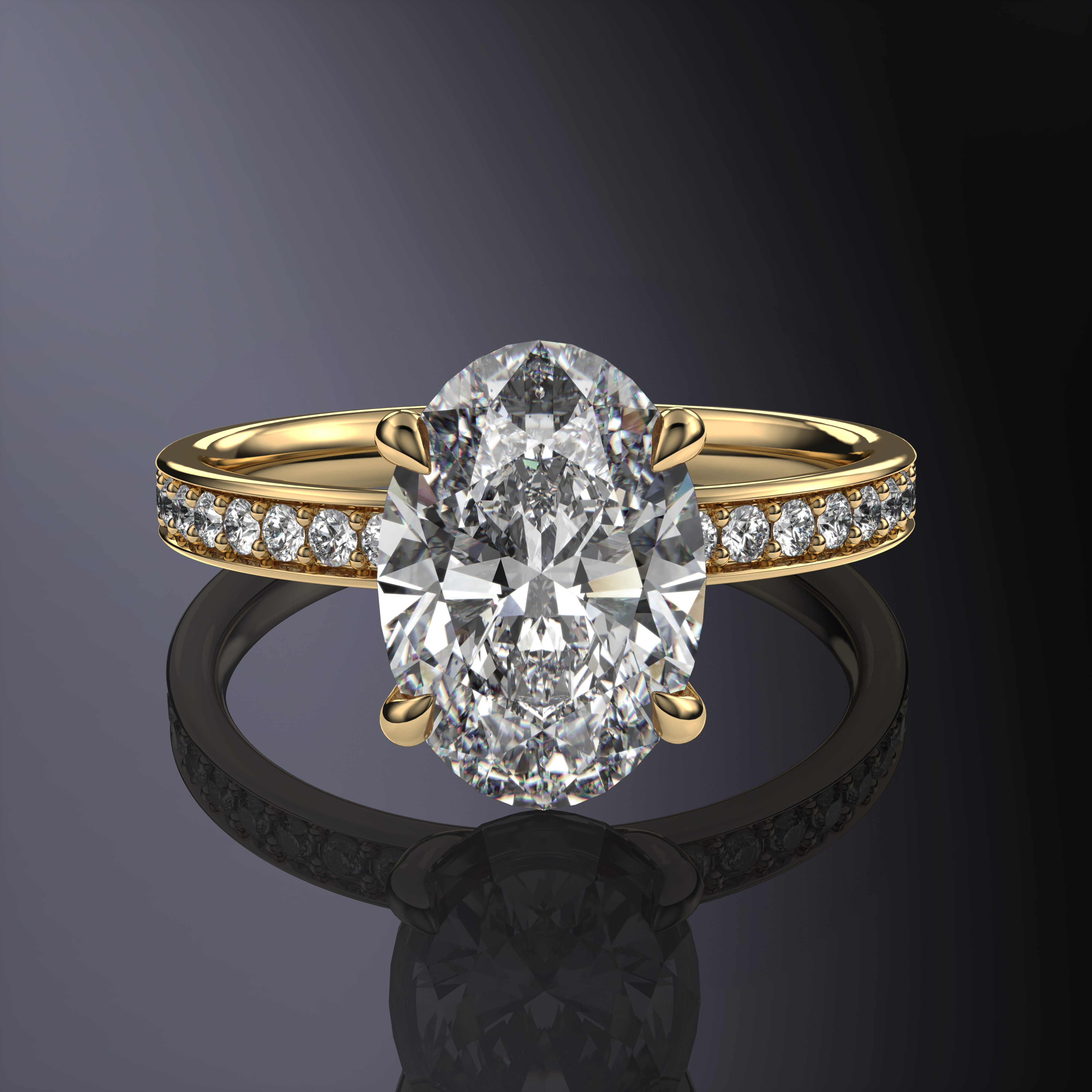 Oval Pavé Solitaire Yellow Ring