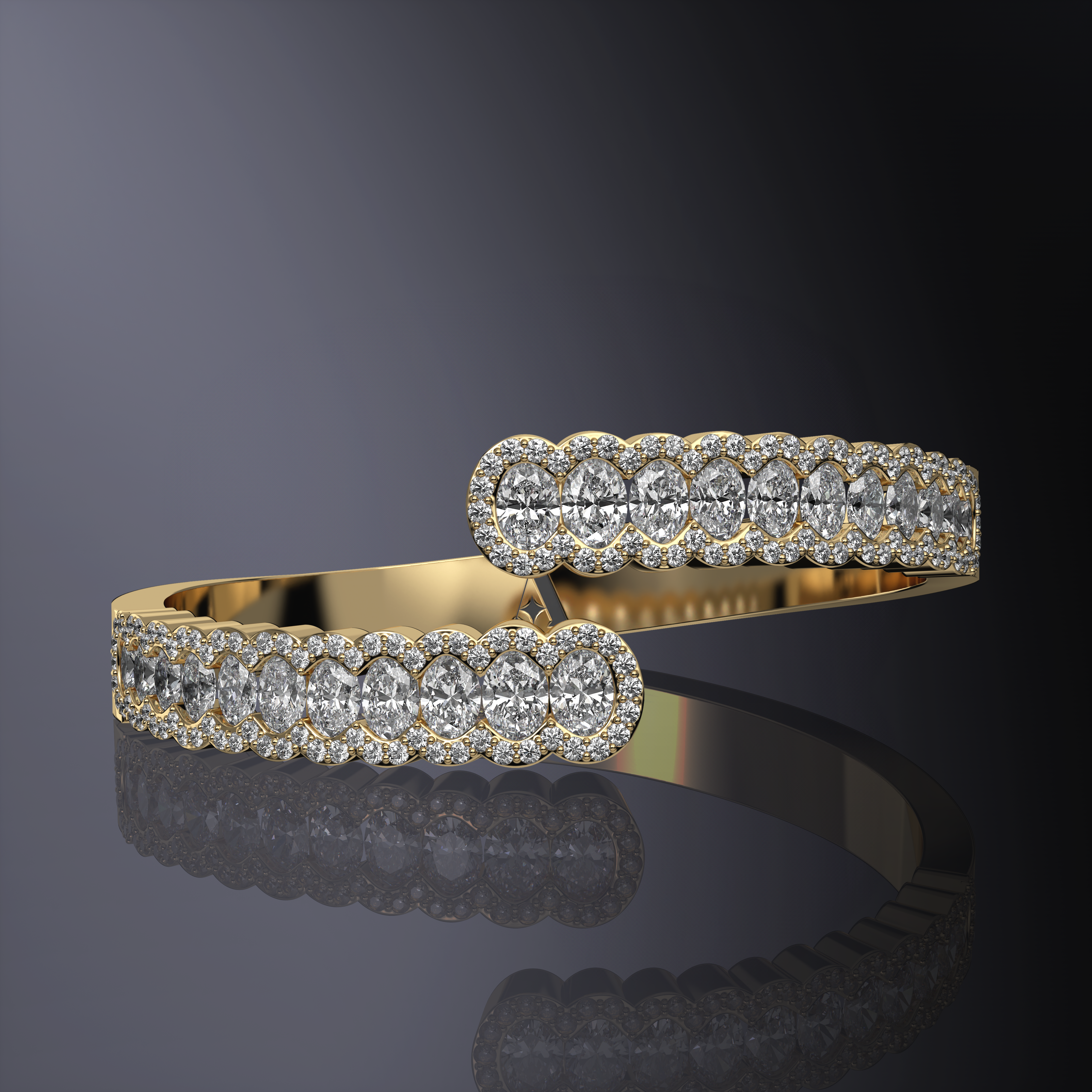 Wrapped in oval lab diamonds surrounded by round brilliant pave and set in 18k gold or platinum. This bangle is a real statement full of sparkle.
