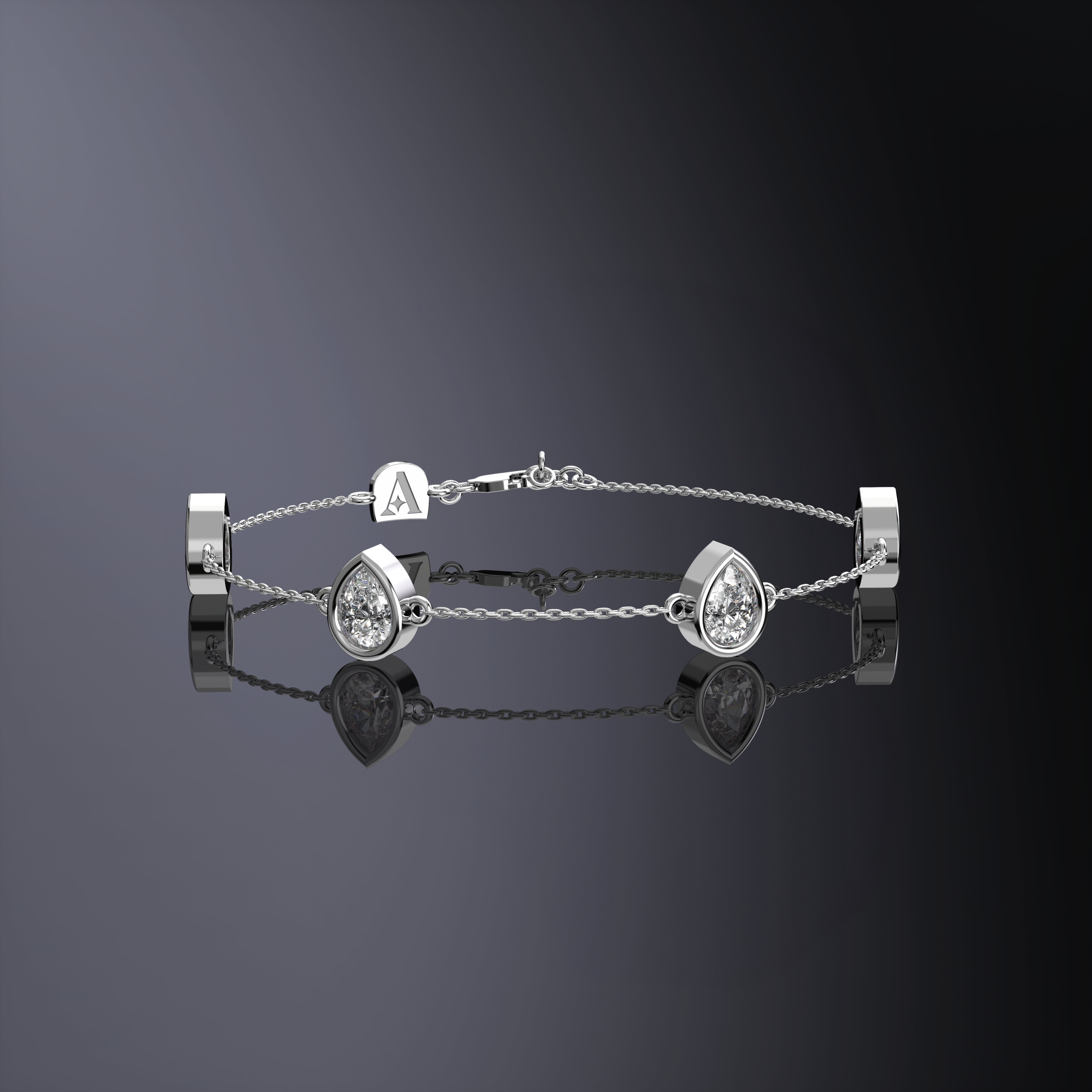 Pear Cut Four Stone Chain Bracelet (POS) White