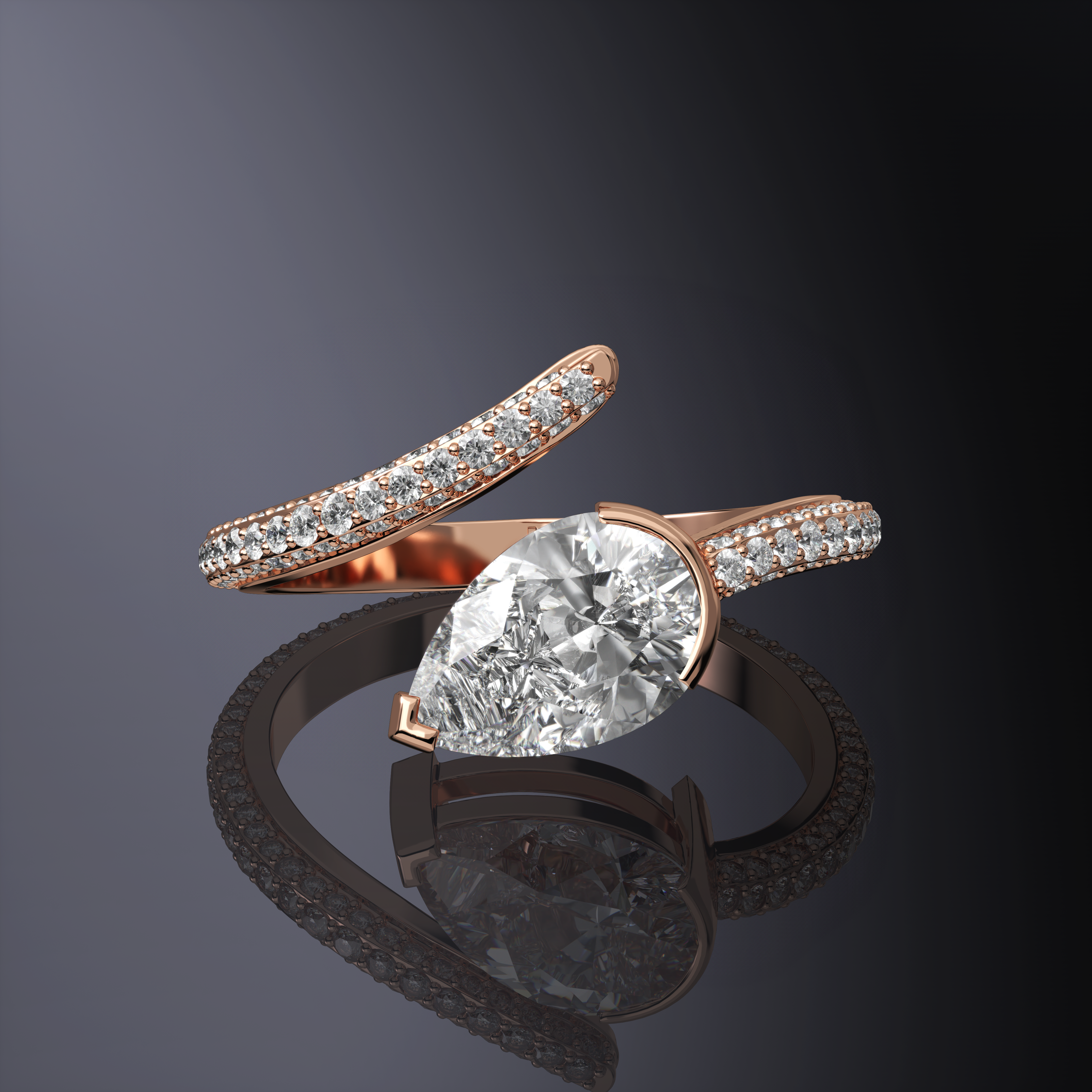 Wrap your finger with our beautiful pear diamond set in 18k gold or platinum with a pave diamond spiral band.