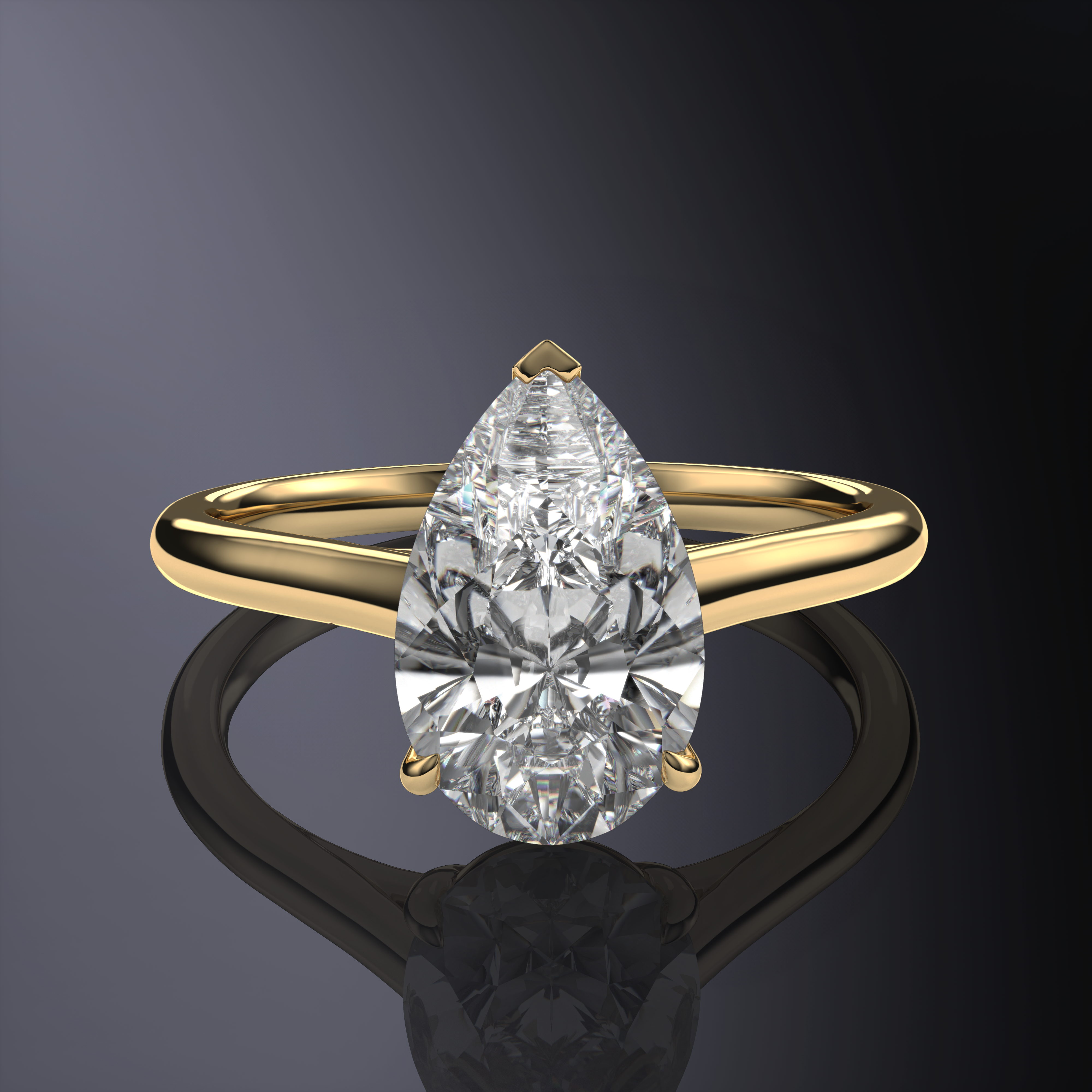 Astrea’s Pear-shaped solitaire engagement ring. A classic setting featuring a beautiful pear shape diamond delicately supported with three prongs.