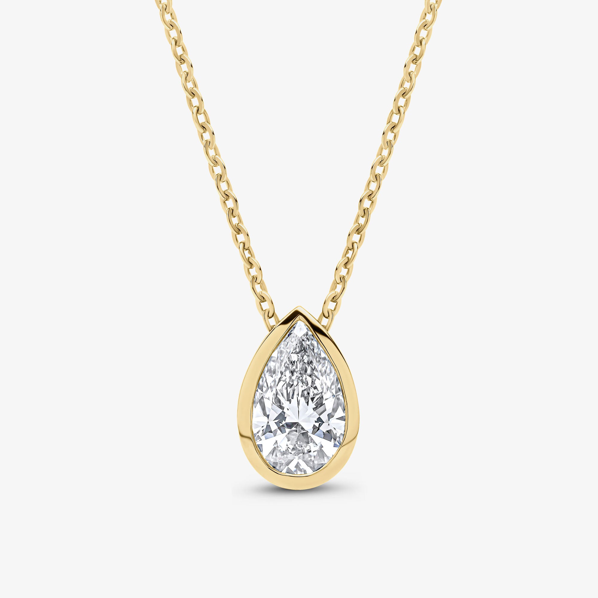 Elevate your elegance with this classic pear cut pendant from, set in 18K Gold or Platinum.
