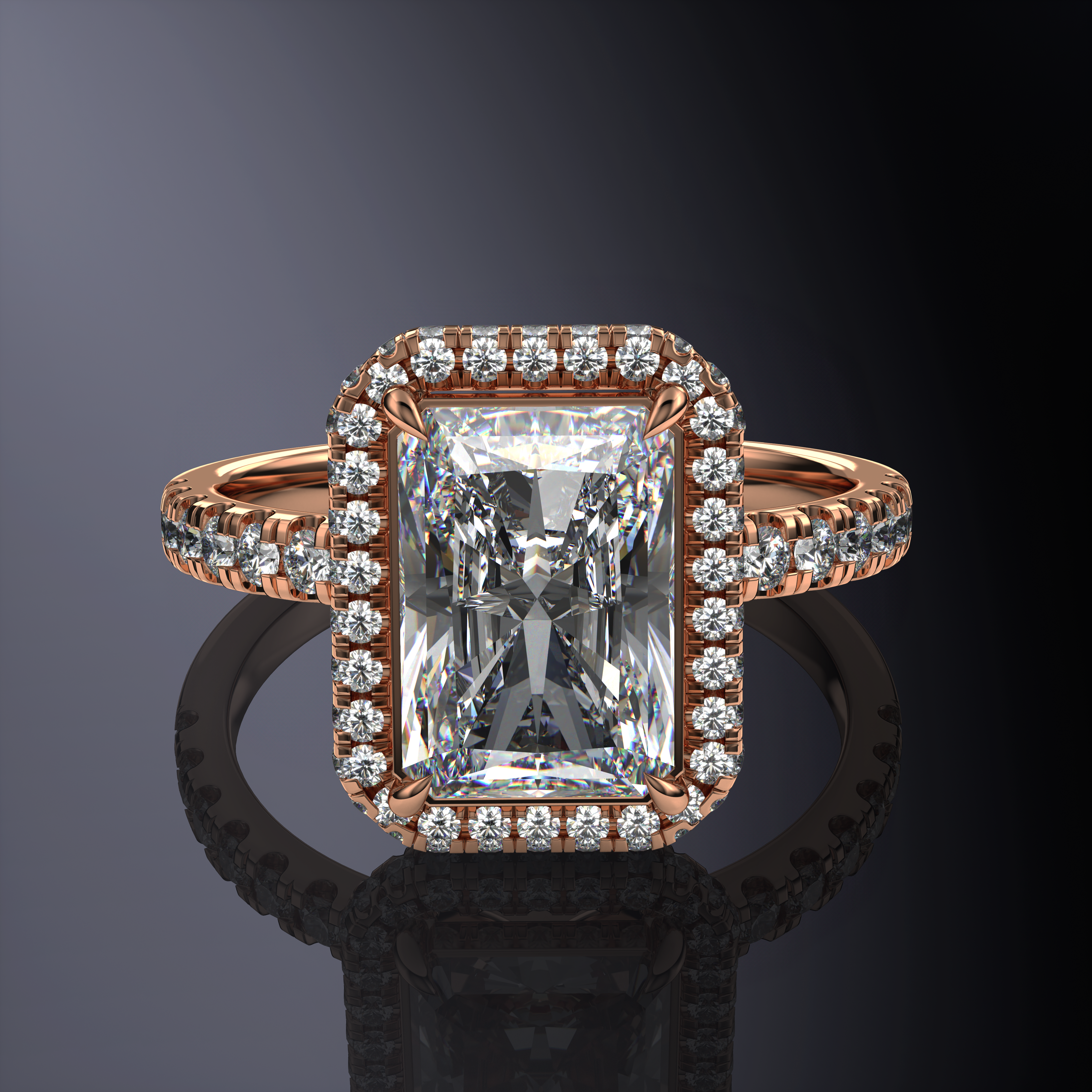 Radiant Halo Rose Ring with Hidden Halo and Pavé Band