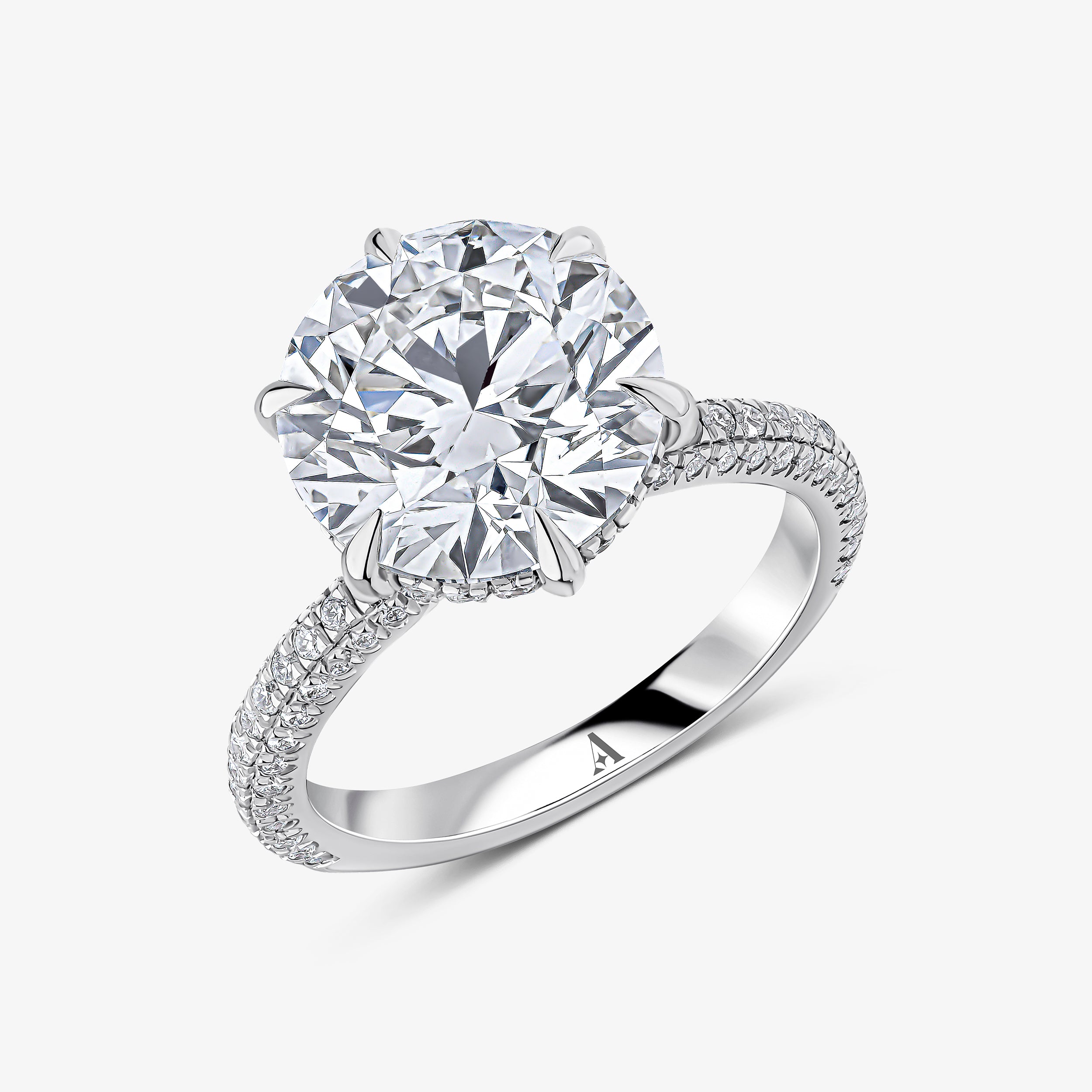 Astrea’s solitaire engagement ring. A popular setting featuring a beautiful round brilliant diamond delicately supported with six claw prongs.