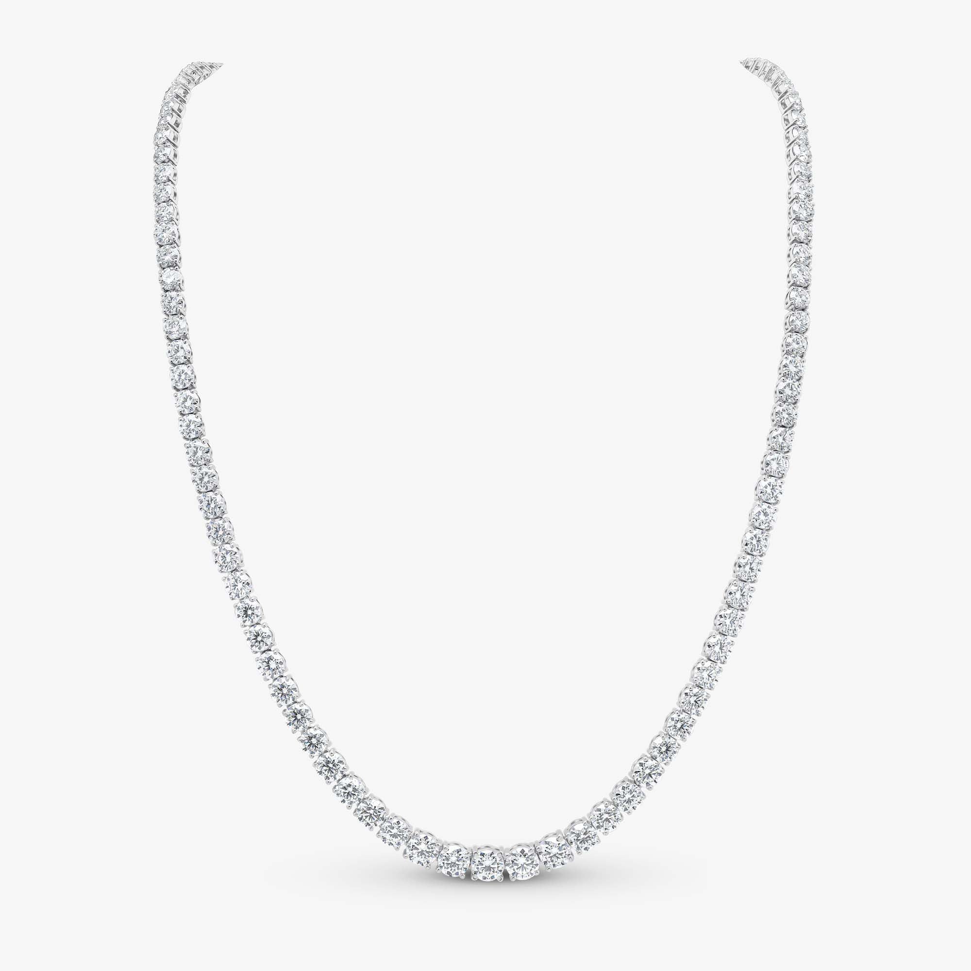 Inspired by timeless sophistication, our round brilliant cut tennis necklace sparkles with a sleek, graduated line of diamonds set in 18K Gold or Platinum.