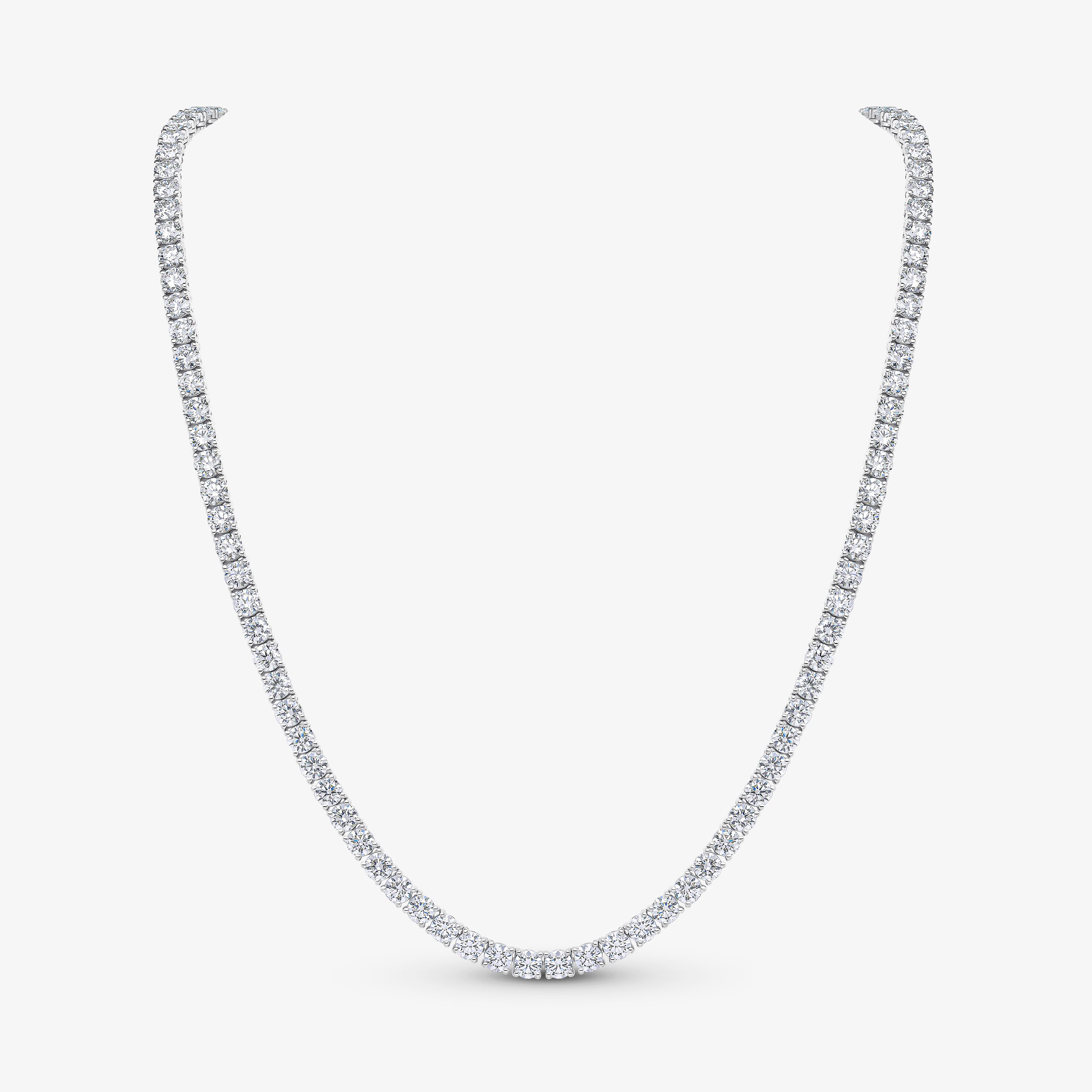 Inspired by timeless sophistication, our round brilliant cut lab-grown diamond tennis necklace sparkles with a sleek line of diamonds set in 18K Gold or Platinum.